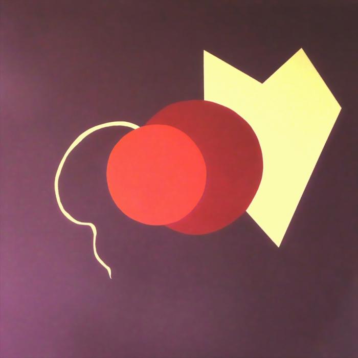 Semi-abstract acrylic on 1m sq canvas. Derived from the centre of a hollyhock flower.