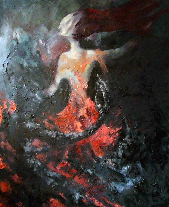 So this piece represents an old tradition of my country, it's sort of like Halloween but we have a specific type of masks and costumes. So the people gather together and put on their costumes and start to dance to chase away the ghost and witches so the year would be fruitful and productive. My representation of the women is dancing in front of two shadows in the both corners of the painting, the second one is not very visible! Hope you enjoy this one!