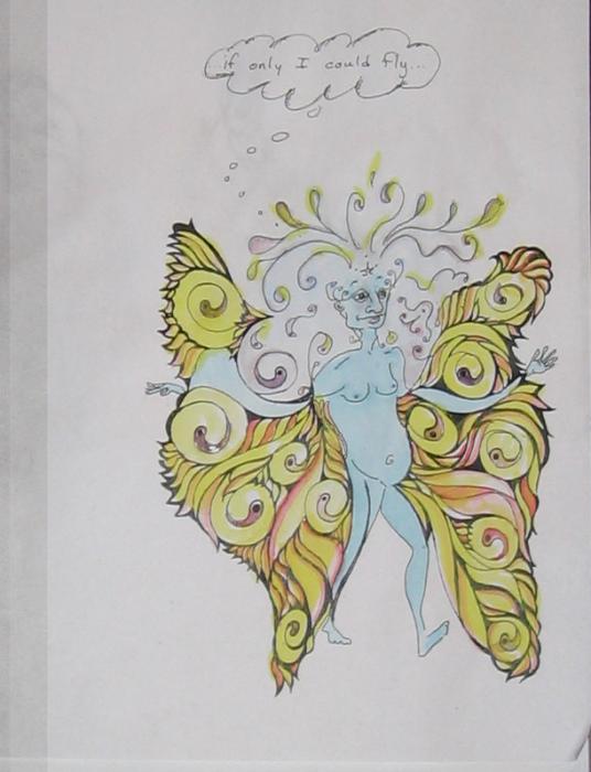 Tina Oppenheimer (AMPster) drew the wings and sent me a bunch -- I drew in the bod' and watercolored it.