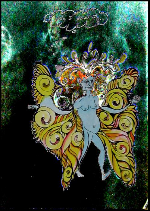 TinaOppenheimer'sWingsLindaKentartist'sBod; Photoshop't background; Pen,ink, watercolors; 2008 oct