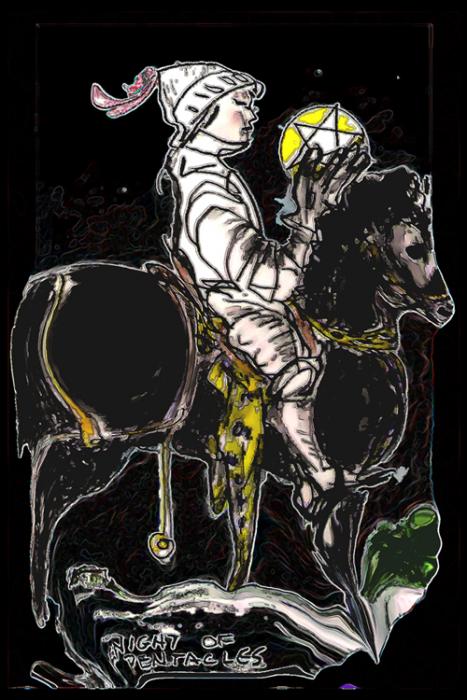 trying to get through the pentacles as I don't like my originals so much... This not too diff' from original except horse looks more horse- and less bull-terrier-like...