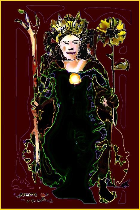 Queen of Wands; pencil, colored pencils on 3x5 index card, phoshopt; 2005-2009